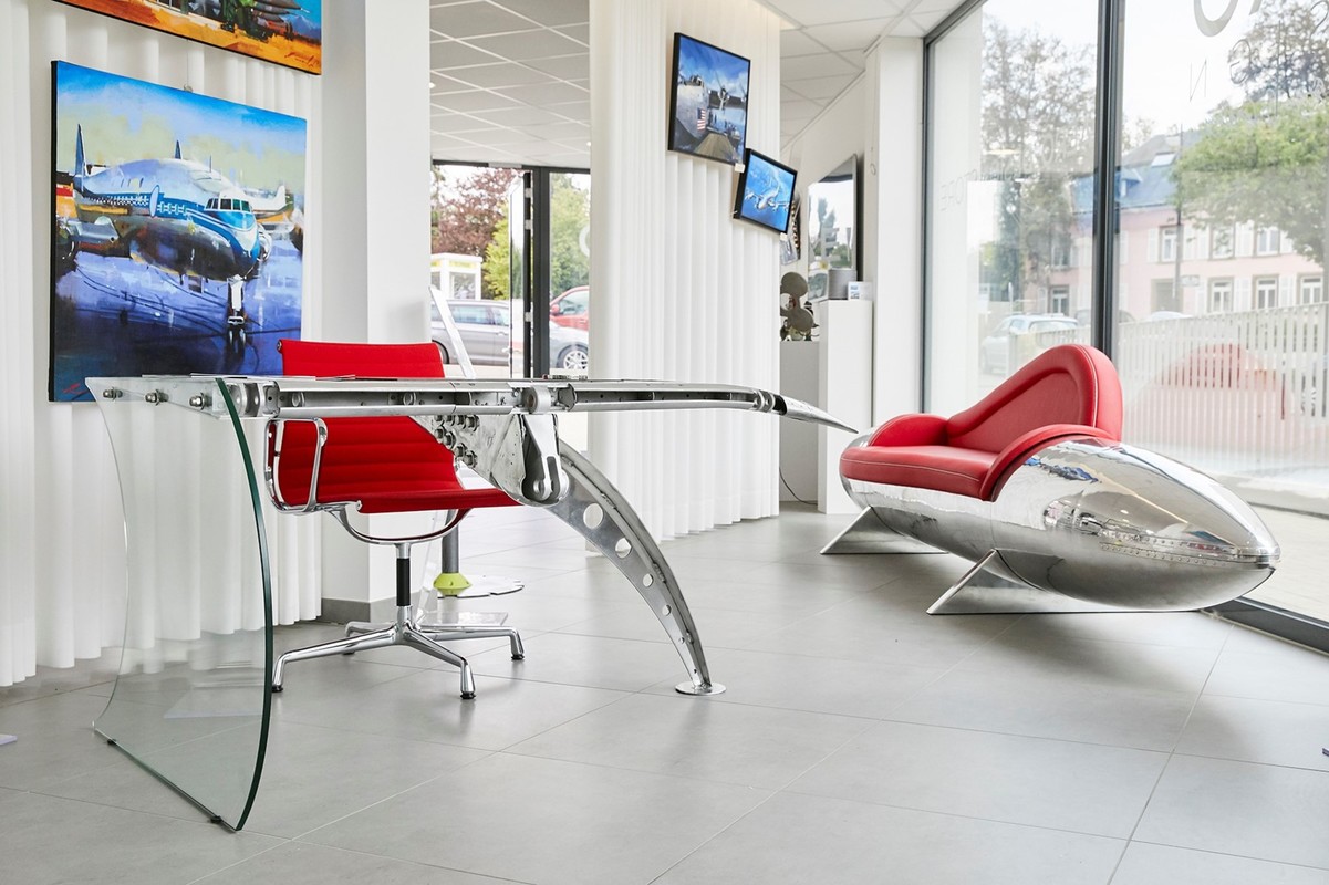 Founded by an artist who is an aviation enthusiast, Agnès Patrice-Crépin, Aero-Design has made a name for itself by transforming aviation parts into unique ornaments and avant-garde furniture. The range includes jewelry, trophies and corporate gifts.